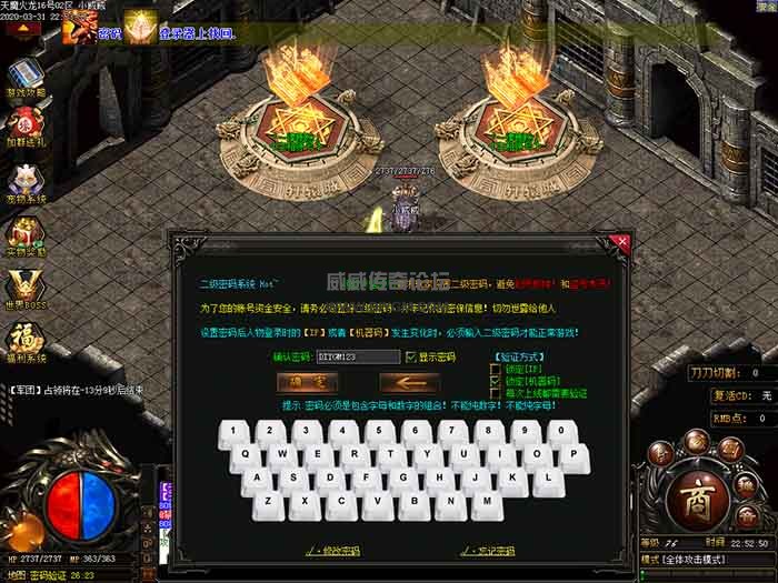 為了防止木馬盜號(hào)事件讓玩家造成損失,現(xiàn)在特采用雙密碼驗(yàn)證登